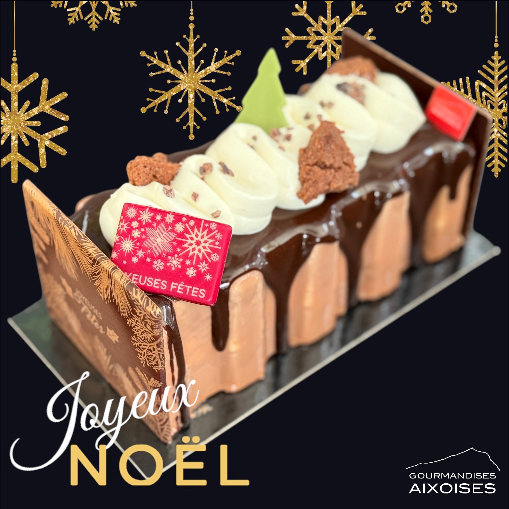 Réf. : 01108Délicieuse mousse provençale aux amandes et pistaches. Insert aux agrumes. L'ensemble monté sur un biscuit croustillant maison. Décor festif.